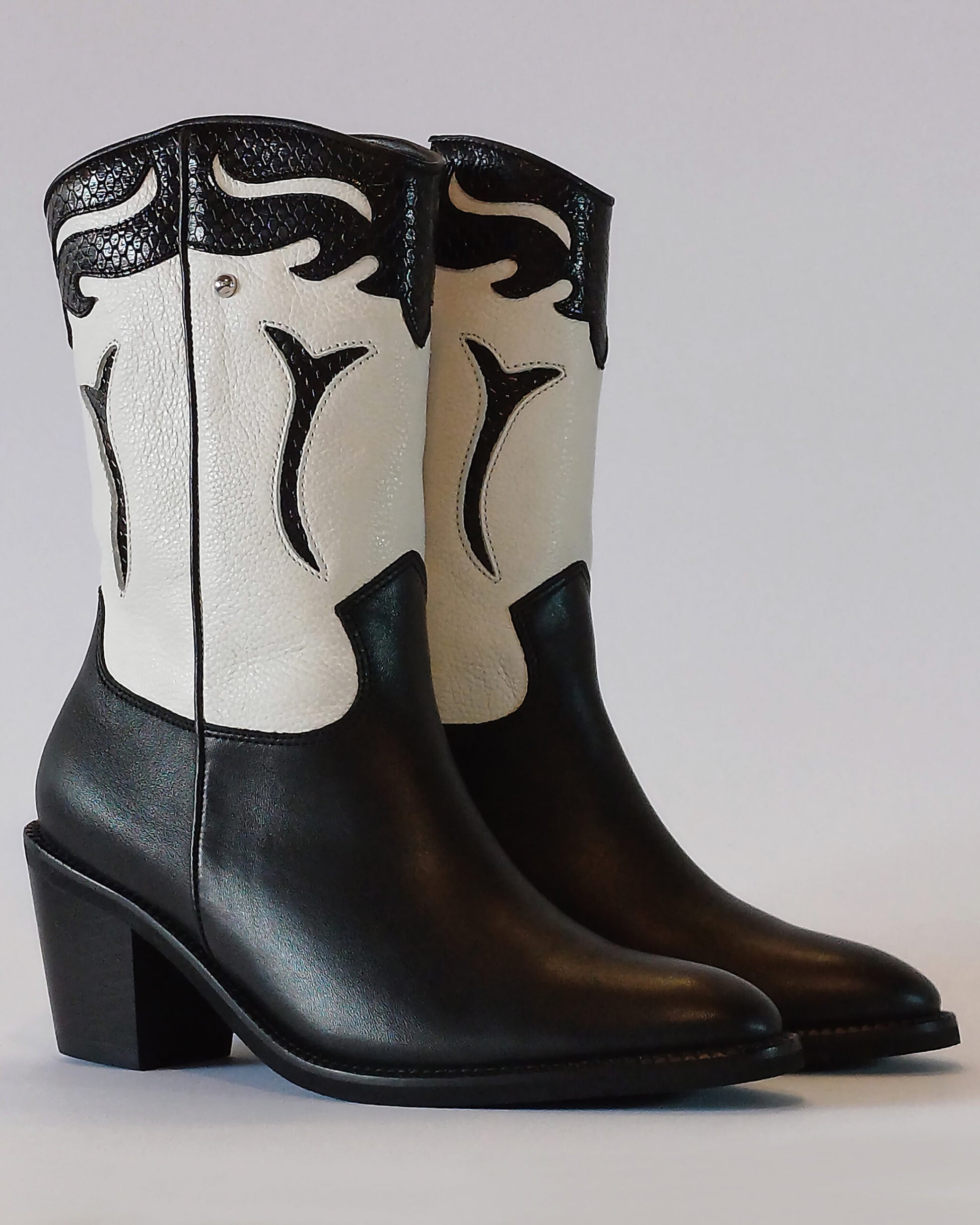 Boots handcrafted and detailed by experienced artisans. High-quality leathers; indented crowns; smooth leather trim; Italian thread edging; leather-wrapped wooden heels; rubber soles.