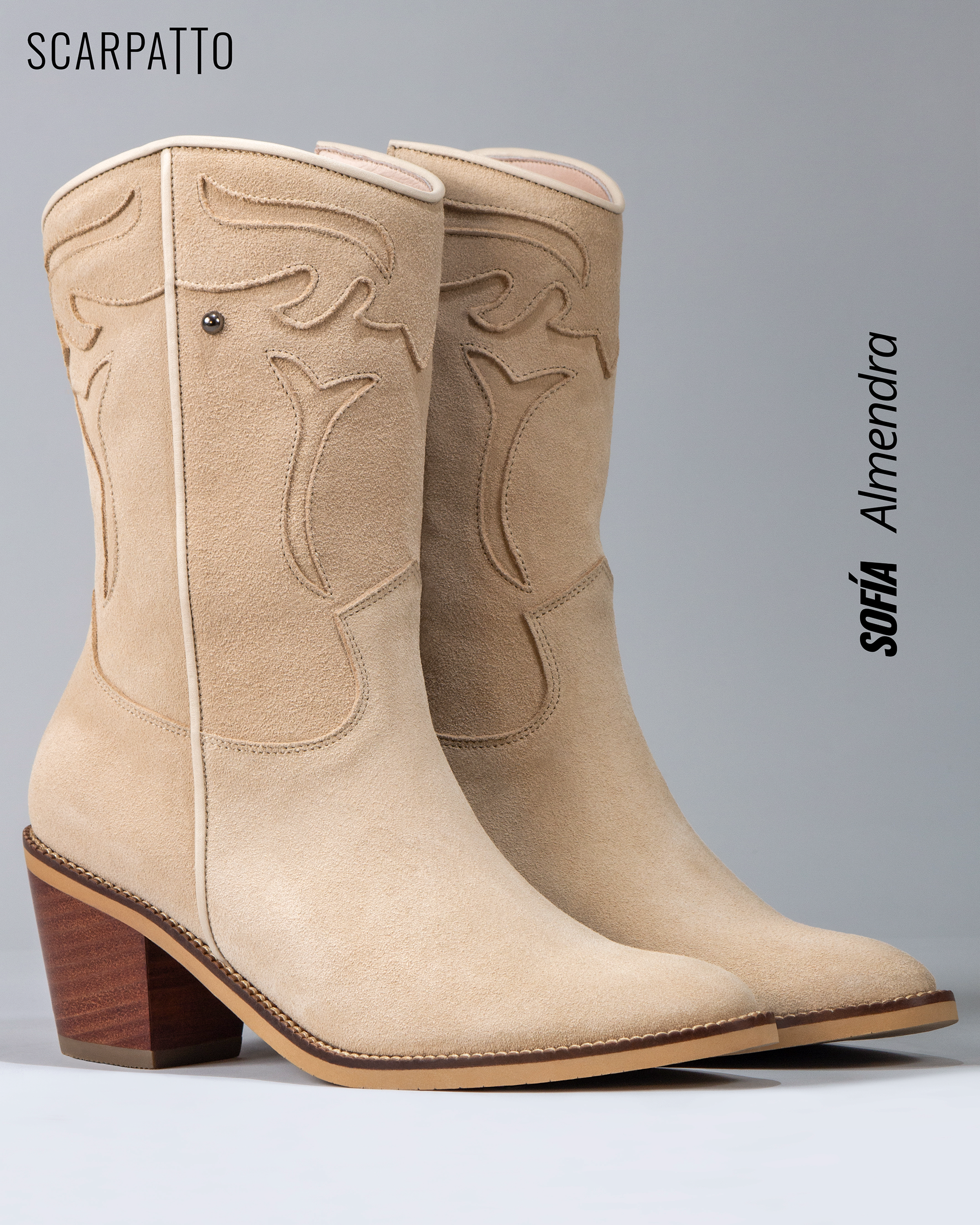 Botas elaboradas y detalladas a mano por experimentados artesanos. Pieles de alta calidad; coronas con diseño indentado; ribetes de cuero liso; cercos en hilo italiano; tacones de madera forrada en cuero; suelas de caucho.