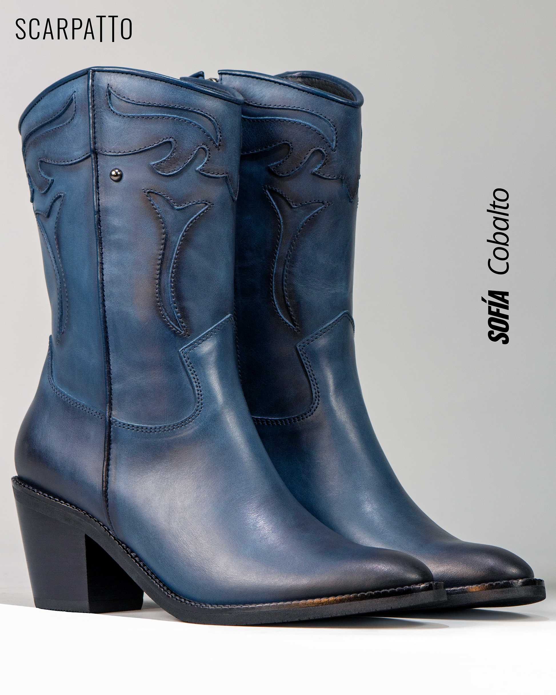 Botas elaboradas y detalladas a mano por experimentados artesanos. Pieles de alta calidad; coronas con diseño indentado; ribetes de cuero liso; cercos en hilo italiano; tacones de madera forrada en cuero; suelas de caucho.